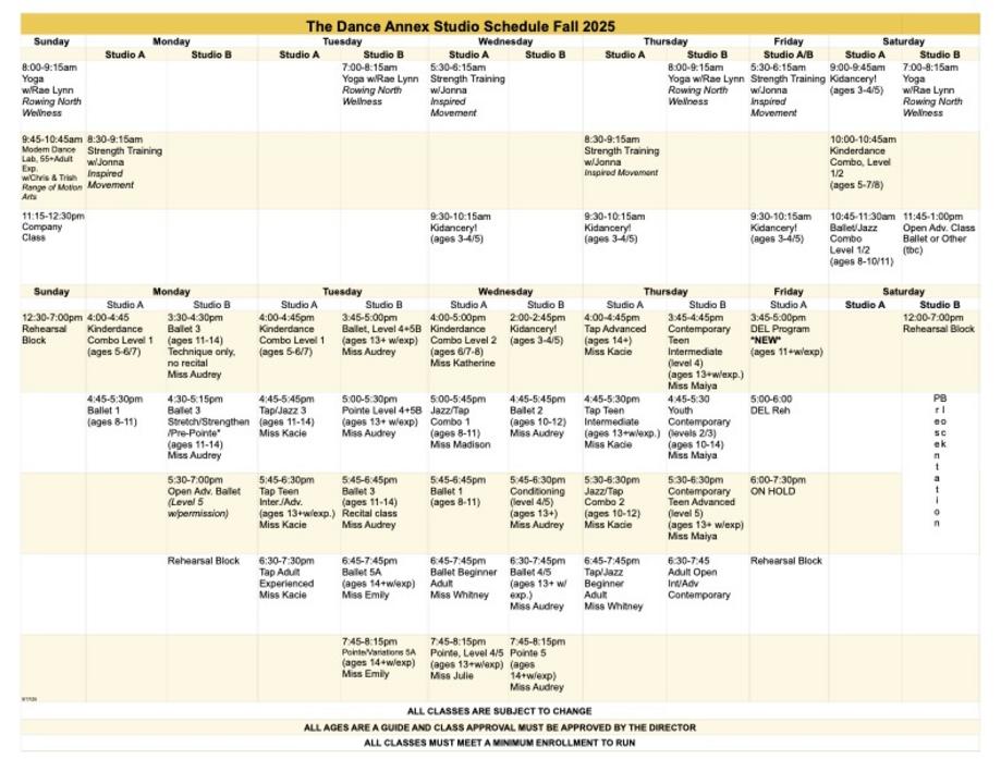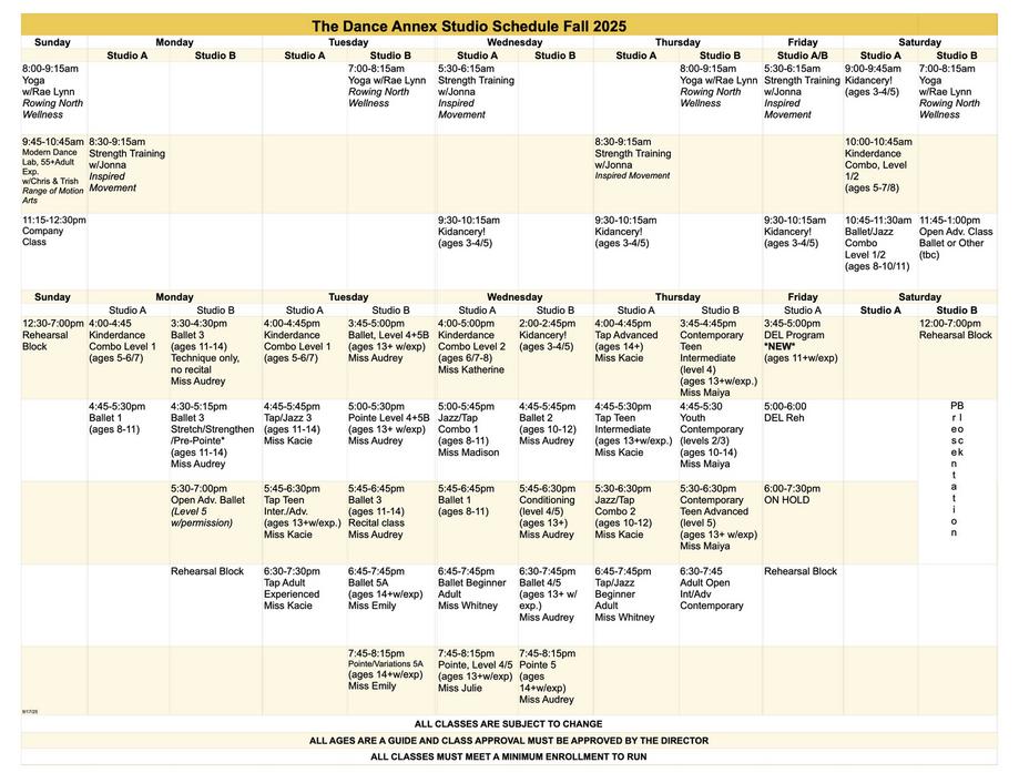 Please come into the studio to register. Registration forms with 2025/26 updated class & tuition information will be coming soon. Please keep an eye on your email for info & additional registration dates!